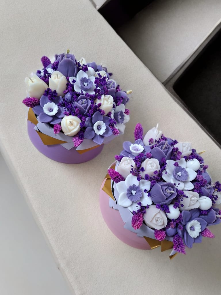 O simfonie a culorilor și a formelor! Aranjamentul Violet Symphony este o capodoperă artizanală ce reunește zeci de flori modelate manual în nuanțe încântătoare de lila, mov intens și alb fildes. O piesă de decor opulentă, ideală pentru a aduce un aer de noblețe și prospețime oricărui spațiu.